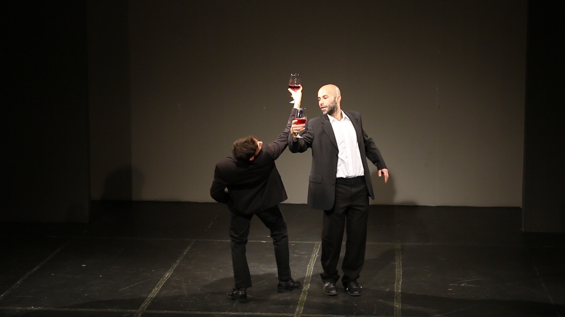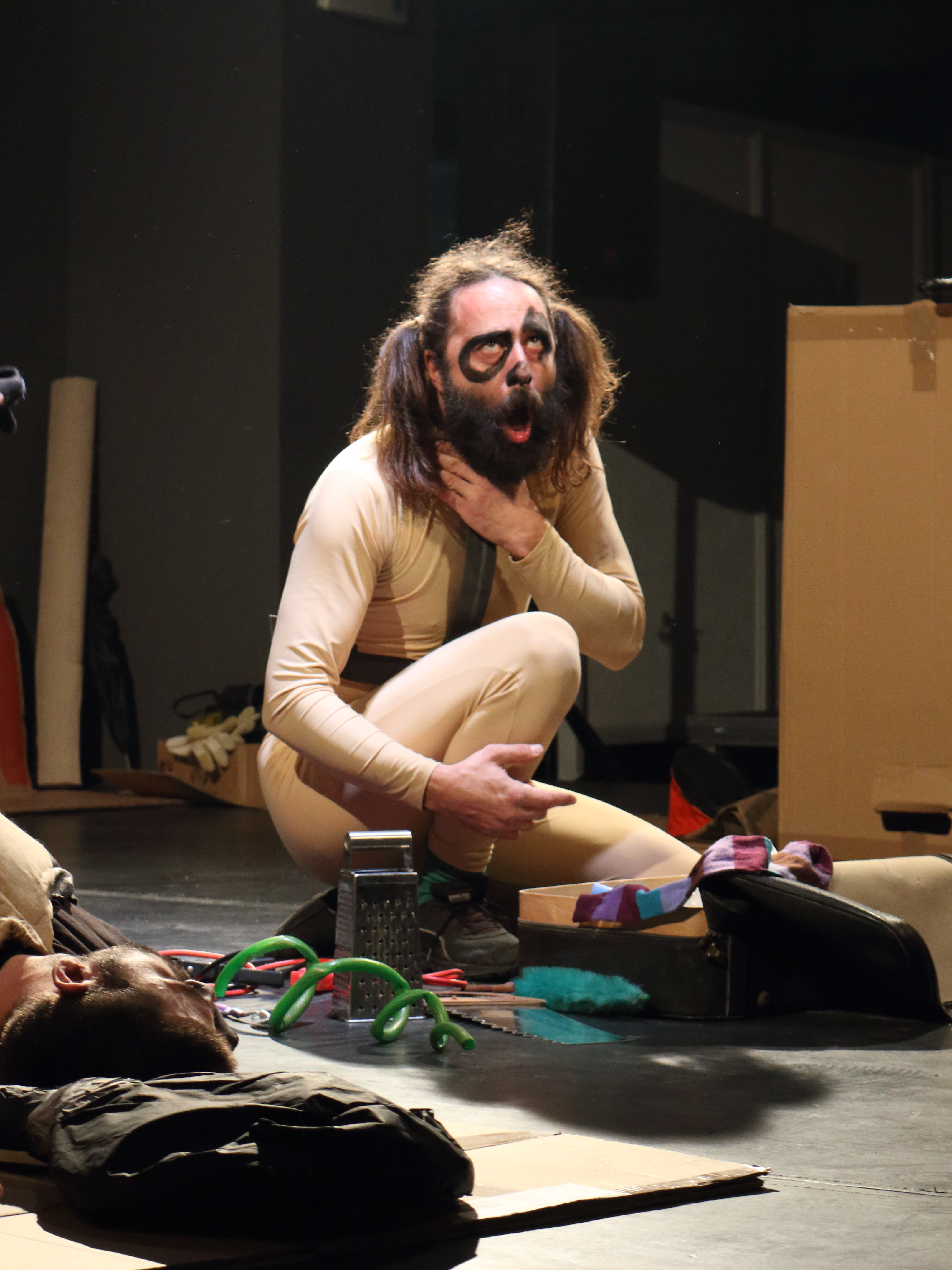 ο θίασος επινοεί όλο το θεατρικό έργο επί σκηνής εκείνη τη στιγμή. Δύο ηθοποιοί. Αμέτρητοι χαρακτήρες. Ταυτόχρονα!