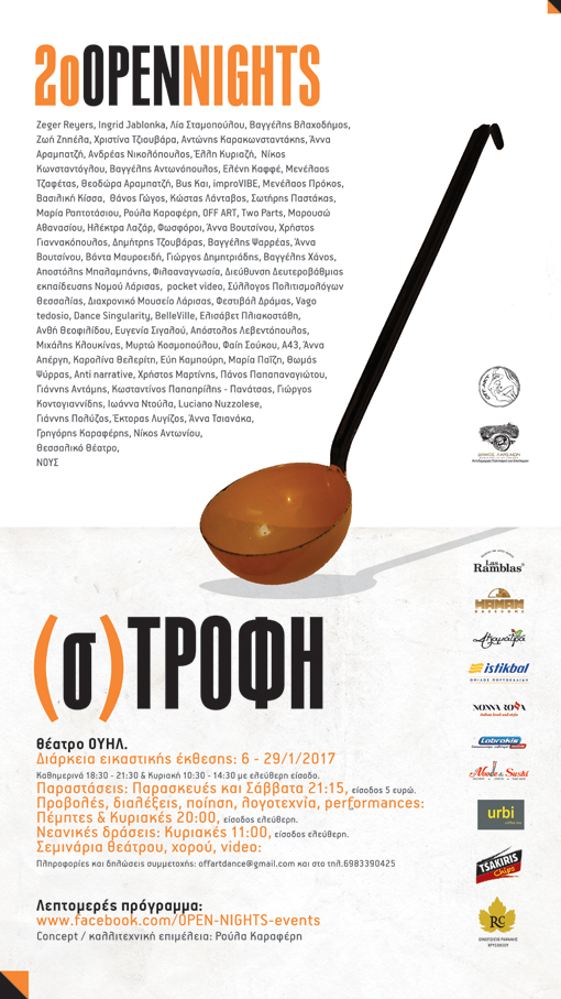 Το 2ο OPEN NIGHTS Φεστιβάλ της ομάδας χορού Off Art και της Αντιδημαρχία Πολιτισμού και Επιστημών Δήμου Λαρισαίων, παρουσιάστηκε στις 6-29 Ιανουαρίου 2017στον ισόγειο χώρο του Δημοτικού θεάτρου ΟΥΗΛ στην Λάρισα